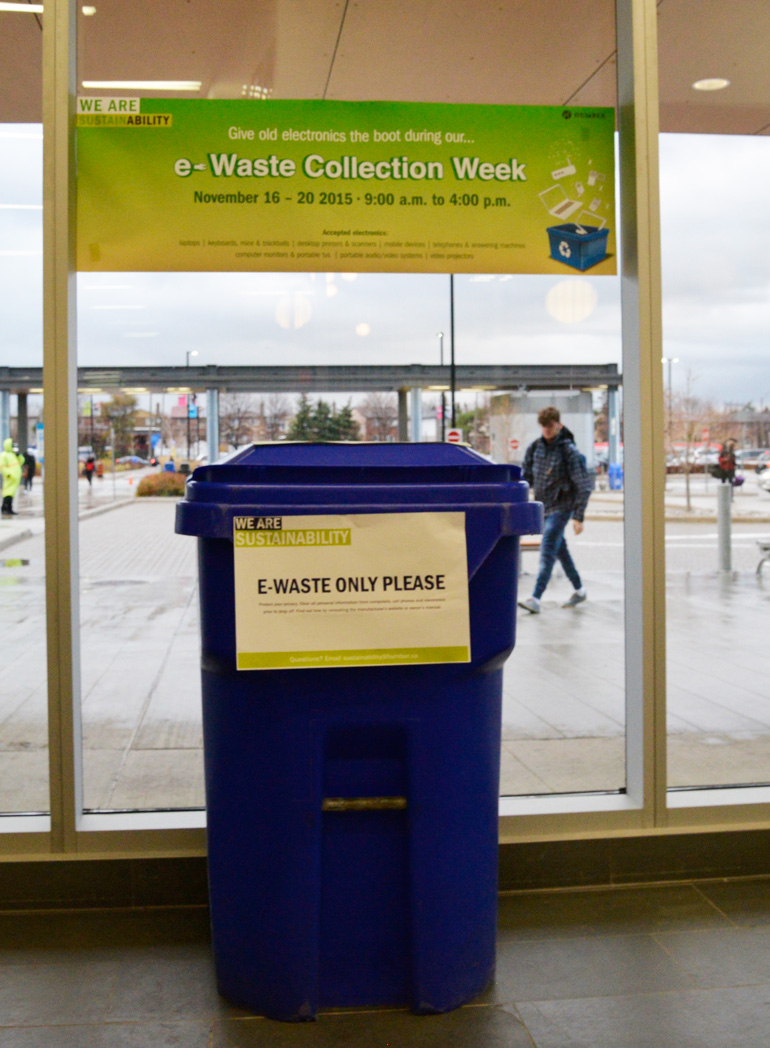The college held E-Waste collection week from Nov.16-20 and Amelia Velasco, manager of sustainability, said there were two collection bins, one at the Lakeshore and one at the North campus.