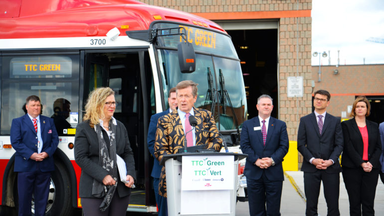 “It’s a historic day for the riders of the TTC. It’s also a big day for the environment and for climate change,” Mendicino said.