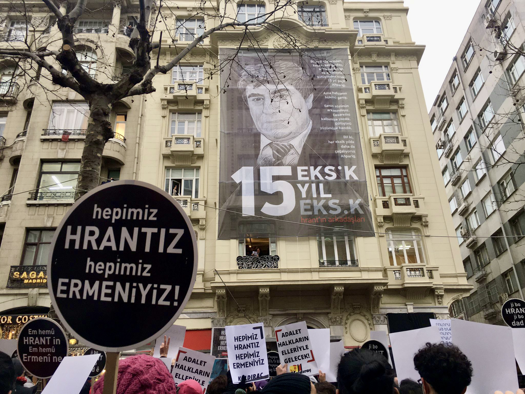 The commemoration featured slogans such as ‘Justice for Hrant’, ‘We are all Hrants, we are all Armenians’, ‘This case will not end until we say it’s over’, and ‘The one who protects the murderers is a partner in the murder.’