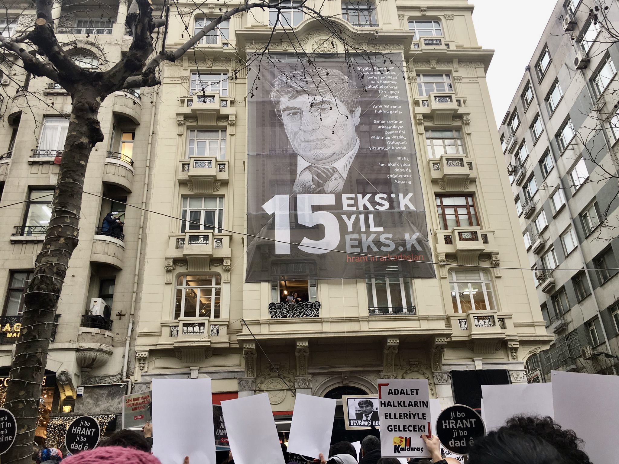 Armenian-Turkish journalist Hrant Dink was remembered for the 15th time on Jan.19 in Istanbul, Turkey. It is written on the banner that '15 missing years away from your magical words.' Photo credit: Nurcan Caliskan