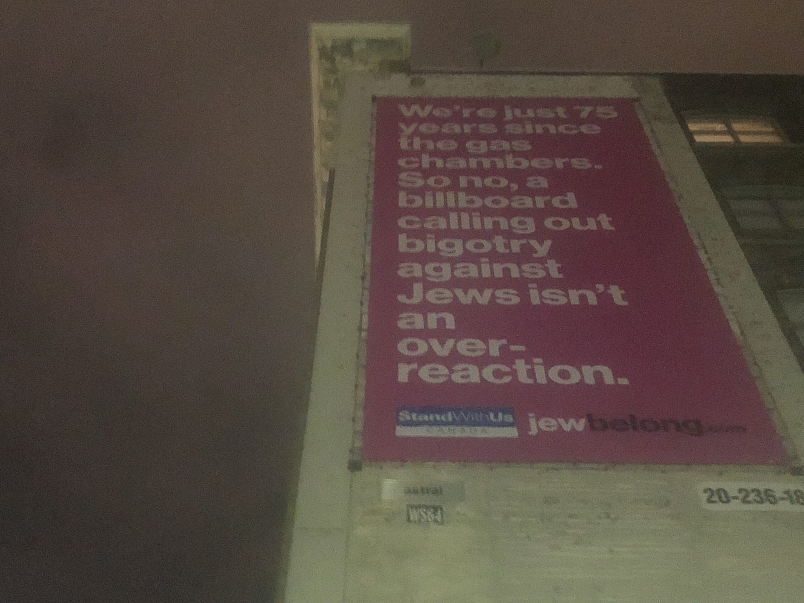 Jewish non-profits Stand With Us and Jewbelong teamed up to help raise attention to the issue by renting out billboard spaces across the GTA that aim to spread understanding of the antisemitic problems further.
